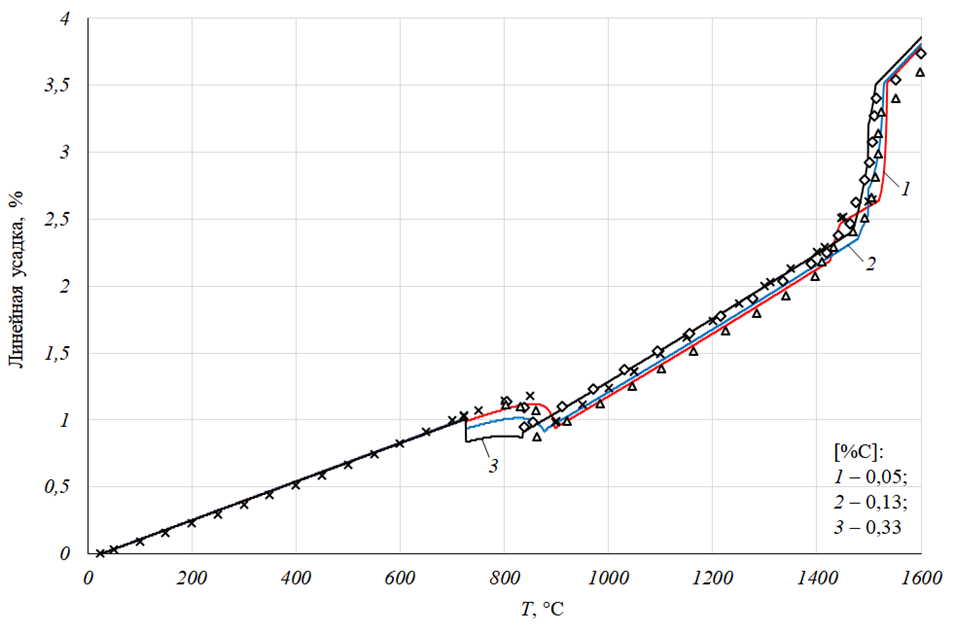 1. Изменение коэффициентов линейной усадки от температуры для сплавов с различным содержанием углерода | |