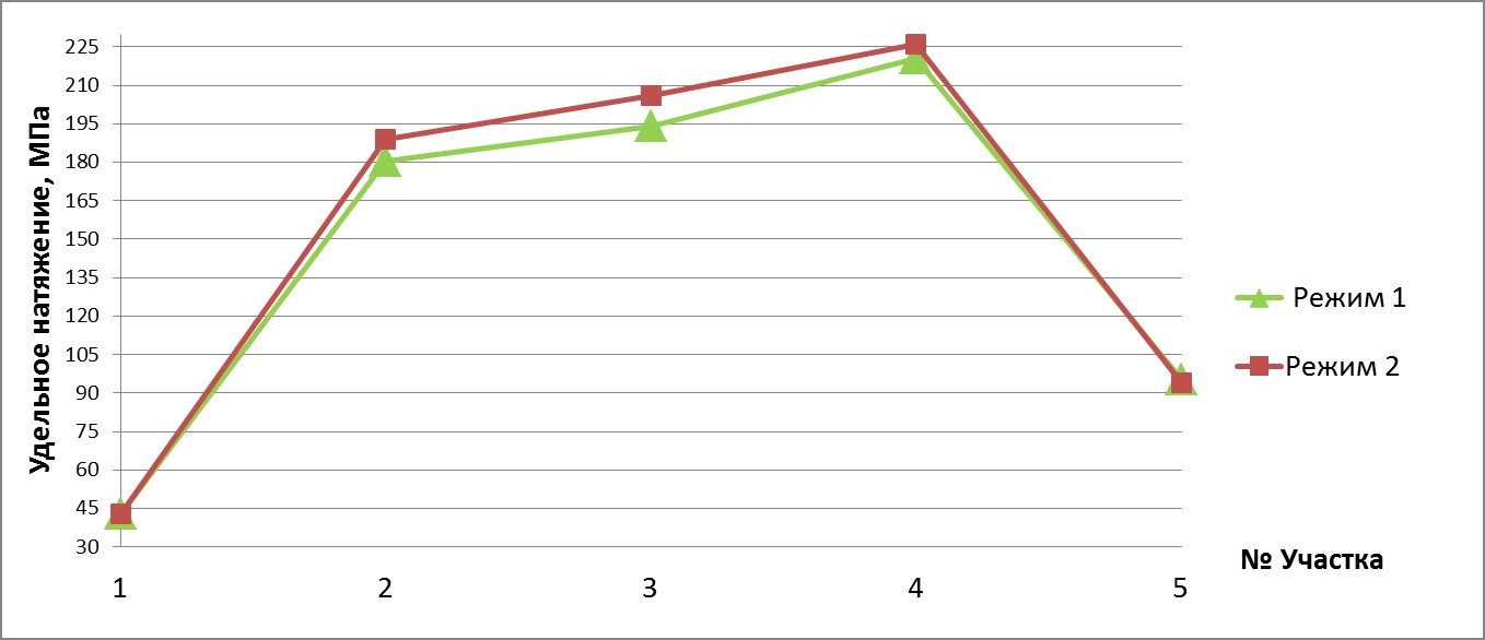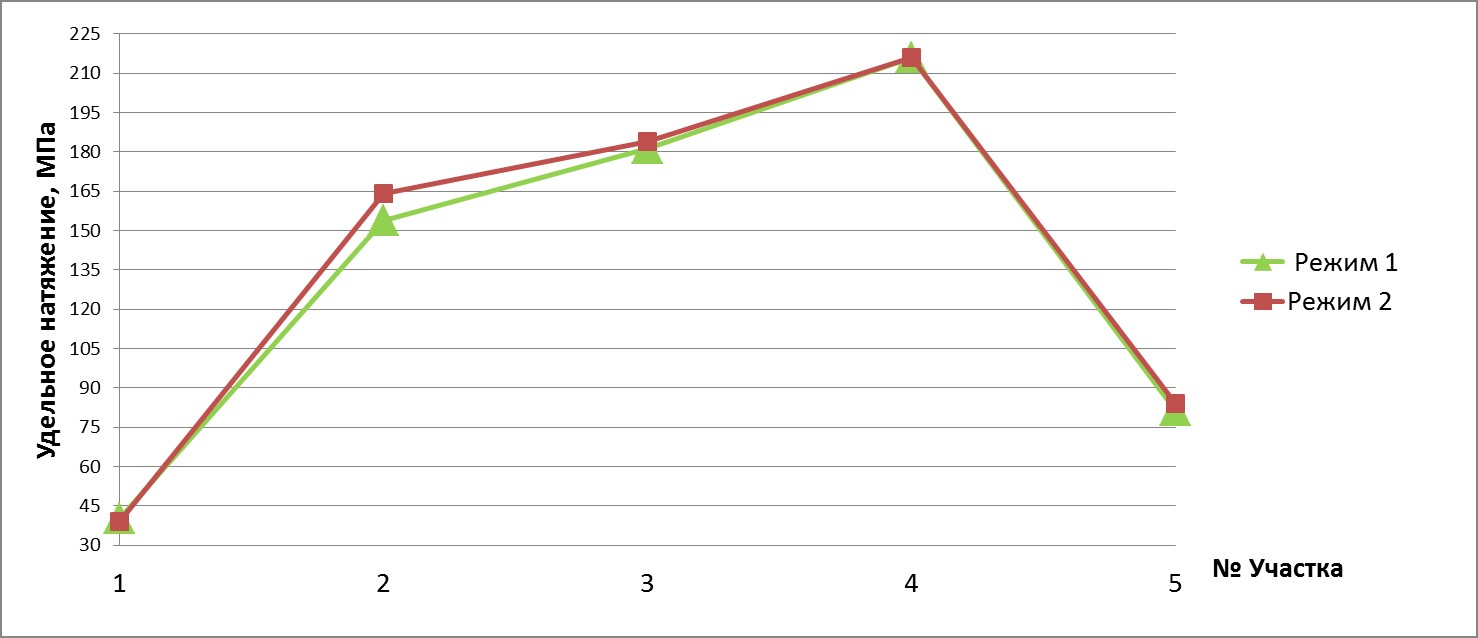 2. Режимы натяжений на стане 1400 для типоразмера №1 | |