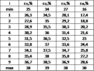 5. Границы поддиапазонов изменения относительного обжатия | |