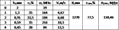 1. Режимы обжатий на стане 1400 для типоразмера №1 | |