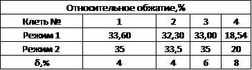 3. Режимы обжатий на стане 1400 для типоразмера №2 | |