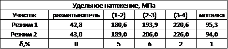 4. Режимы натяжений на стане 1400 для типоразмера №2 | |