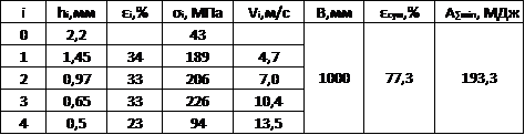 1. Режимы обжатий на стане 1400 для типоразмера №1 | |