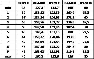 6. Границы поддиапазонов изменения средних удельных натяжений