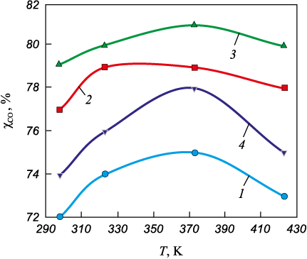 Fig. 3. Dependence of transformation degree (χCO ) |