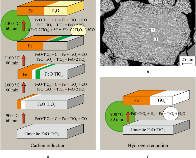 Since the final stage of any reduction reaction is the uptake of “free” electrons by the cations being reduced, the most direct route to reduction is to generate these electrons at modern power stations and deliver them to the cations via the electrical grid – that is, electrolysis. Electrolysis of melts for the production of carbon-free iron constitutes a promising pathway for processing rich, single-mineral iron ores. A comparably promising avenue for processing complex and lean ores is the selective, low-temperature reduction of iron using hydrogen, with subsequent separation to obtain carbon-free iron together with oxide concentrates of more active metals (e.g., manganese, chromium, titanium).